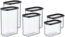 - Vorratsdose 1000 ml: Abmessungen (LxBxH): ca. 14,4 x 9,0 x 11,4 cm, Material: Styrol-Acrylnitril (SAN), Polyethylen (PE)