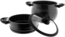 3 in 1 Kochtopf mit marmorbeschichtetem Dampfgarer und Couscoussier, ideal für die Zubereitung gesunder Gerichte. Mit einem Fassungsvermögen von 12 Litern und einem modernen, schwarzen Design ist dieser Kochtopf nicht nur funktional, sondern auch stilvoll. Der Dämpfeinsatz und der Glasdeckel ermöglichen eine einfache Überwachung des Garvorgangs. Die robuste, rostfreie und leicht zu reinigende Materialbeschaffenheit sorgt für eine hygienische Nutzung.