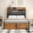 Merax Einzelbett 90 x 200cm Polsterbett mit hydraulischem Hubmechanismus, USB, gepolstertem Kopfteil, Retro-Holz- und Metalldesign, versteckte Stauraumschicht, Schwarz Bild 1