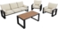 Entdecken Sie das Gartenmöbel Set ELBA 1 in Beige, das aus einem Tisch, einem Sofa und zwei Sesseln besteht und Platz für bis zu 5 Personen bietet. Mit einem stabilen schwarzen Metallrahmen und witterungsbeständigen Materialien vereint es Eleganz und Langlebigkeit. Die bequeme Rückenlehne mit Silikonkugeleinlage und die Sitzpolsterung aus T30-Schaum sorgen für höchsten Komfort. Ideal für Garten, Terrasse oder Balkon.