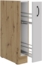 Unterschrank 15 cm mit Schrankauszug aus Metall, ideal für die Küchenzeile STILO in Weiß und Eiche Artisan. Der Schrank verfügt über eine Tür und einen Innenraum mit einem Metallkorb sowie zwei Ablagen. Die Front ist aus MDF in tiefzieh Weiß matt, während der Korpus aus Laminat in Eiche Artisan matt gefertigt ist. Der Griff ist aus schwarzem Metall mit einem Lochabstand von 96 mm.