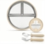 Das Auledio Kindergeschirr-Set besteht aus einem innovativen Edelstahl-Baby-Teller mit Silikon-Saugnapf. Der Teller kombiniert strapazierfähigen 304 Edelstahl mit einer rutschfesten Silikonbasis, die mit vier starken Saugnäpfen ausgestattet ist. Dies sorgt dafür, dass der Teller sicher auf Hochstuhltabletts oder Tischen bleibt und Ihr Kind selbstständig essen kann. Zudem ist der Teller bruchsicher, hitzebeständig und spülmaschinenfest, was die Reinigung erleichtert und eine gesunde Essenszeit fördert.