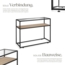Der Konsolentisch Kilkenny von tectake vereint modernes Design mit Funktionalität. Mit einer Glasoberfläche und einem stabilen pulverbeschichteten Stahlgestell im Industrie-Chic ist dieser Tisch ideal für schmale Räume. Die Maße betragen ca. 100 x 41 x 80,5 cm, während die Glasplatte eine Belastbarkeit von 20 kg und die Spanplatte von 30 kg aufweist. Die höhenverstellbaren Kunststofffüße sorgen für Stabilität auf unebenen Böden.