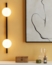 Moderne Wandlampe ISABELLA in Schwarz mit zwei kugelförmigen Glasschirmen. Das schlichte Design und die dezente Farbwahl bringen einen eleganten Look in jeden Wohnbereich. Die weißen Glasschirme harmonieren perfekt mit dem schwarzen Metallsockel. Hergestellt aus hochwertigen Materialien, bietet diese Lampe Langlebigkeit und Pflegeleichtigkeit. Ideal, um Ihre Wand zu verschönern und eine gleichmäßige Beleuchtung zu schaffen.