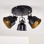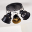 Die runde Deckenlampe „Rimini“ überzeugt mit ihrem eleganten Retro/Vintage Design und bietet durch die 3-flammige Ausführung mit verstellbaren Strahlern eine individuelle Lichtgestaltung. Die Leuchte aus schwarzem Metall mit goldfarbenen Innenschirmen sorgt für einen besonderen Lichteffekt an der Decke. Sie ist für LED-Leuchtmittel geeignet und bietet eine maximale Leistung von 3x40 Watt.