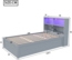 Das Schlafsofa mit Mehrfachsteckdose und mehreren Staufächern ist ein hydraulisches Bett aus Kiefernholz in Grau mit den Maßen 90x200 cm. Es bietet 4 Ablagefächer für zusätzlichen Stauraum und eine multifunktionale Steckdose zum Aufladen elektronischer Geräte. Die integrierte LED-Beleuchtung kann per Fernbedienung oder Smartphone gesteuert werden und sorgt für ein stimmungsvolles Ambiente. Ideal für kleine Räume, vereint es Stabilität und Funktionalität.