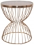 Moderner Beistelltisch mit einem hochwerigen Stahlrohrgestell, roségoldfarben beschichet. Oben eingelegt eine getönte-Sicherheitsglasplatte, die farblich hervorragend mit dem roségoldfarbenen Stahlgestell harmoniert. Der Beistelltisch wird montiert angeliefert. Einfach auspacken. Maße ca. cm.: Durchmesser 50 x H. 57 cm.