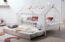 Ticaa Hausbett Kim mit Rausfallschutz und Zusatzbett aus Kiefer, Kinderbett 140x200, inkl. Tüll-Set, mit Rollrost, mit 2 Matratzen