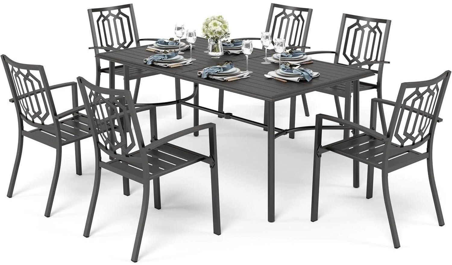PHI VILLA Gartenmöbel Set Metall 6er Stühle Gartentisch Outdoorsitzgruppe