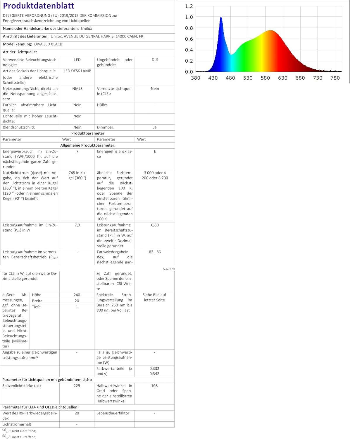 U Ni LUX LED-Tischleuchte DIVA, dimmbar, schwarz Ausführung des Leuchtmittels: 7 Watt, Lichtstrom: 400 Lumen, Lichtfarbe: warmweiß-kaltweiß (3. 000-6. 000 K), Energieeffizienzklasse: A, Verbrauch: 7,2 k Wh/1. 000h, Lebensdauer: 30. 000 Stunden, QI- und USB Ladefunktion, (400124560)Armlänge: 420 mm, Länge Leuchtenkopf: 410 mm, Durchmesser Fuß: 150 mm, Fuß aus Kunststoff, Kopf und Arm aus Aluminium LED-Tischleuchte DIVA Elegante Leuchte mit vielen Einstellmöglichkeiten Ergonomisch: Beleuchtungsstärke und -Temperatur über Schalter in 3 Stufen regulierbar Laden über Induktion und USB: Eine induktive Ladefläche und ein USB-Ladeport versorgen Smartphones oder Kleingeräte mit Strom Elegantes Design: Schlanke klare Linien in zeitlosem Design. Der Kopf ist um 180° neigbar • EEK (Energieeffizienzklasse): A • Lichtstrom: 400 Lumen • Lichtausbeute: 60 lm/W • Mindest-Farbwiedergabewert: 80 Ra • Lichtfarbe: warmweiß / neutralweiß / kaltweiß (in 3 Stufen dimmbar 3. 000 K / 4. 000 K / 6. 000 K) • Verbrauch: 7,2 k Wh/1000h • max. Beleuchtungsstärke 1. 100 Lux (gemessen 350 mm ab Tischoberfläche) • Lebensdauer: 30. 000 Stunden • Fuß aus Kunststoff, Kopf und Arm aus Aluminium • Durchmesser Sockel: 150 mm • Länge Leuchtenkopf: 410 mm • Armlänge: 420 mm • Eurostecker (Kabel abnehmbar)