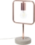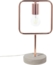 Moderne, minimalistische und kupferfarbene Tischlampe. Ein raffiniertes Design macht diese moderne Tischlampe zu einem wahren Designobjekt. Wie ein kleines Schild steht die Leuchte auf einem stabilen, runden Fuß aus hellgrauem Beton. Das Leuchtmittel hängt in einem viereckigen Rahmen aus glänzendem, anlaufbeständigem Kupfer. Das minimalistische Design harmoniert perfekt mit dem kontrastierenden Materialmix. Eine vielseitige, funktionale und dekorative Lichtquelle mit industriellem Charme und moderner Ausstrahlung.
