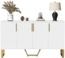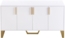 Das Sideboard in Hochglanz Weiß (140 x 40 x 80 cm) vereint modernes Design mit praktischem Stauraum. Mit vier Türen bietet es großzügigen Platz für Geschirr, Bücher und Medien. Die glatte Hochglanzoberfläche und das dreidimensionale geometrische Linienmuster verleihen dem Möbelstück eine lebendige Optik. Metallgriffe und -beine setzen elegante Akzente und sorgen für Stabilität.