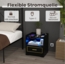 Dieser moderne Nachttisch mit LED-Beleuchtung bringt frischen Wind in Ihr Schlafzimmer. Er bietet viel Stauraum mit einer breiten Tischplatte, einem offenen Regal und einer Schublade. Die LED-Leuchten sind in 3 Stufen einstellbar und schalten sich automatisch ein, wenn Sie sich dem Sensor nähern. Zudem verfügt der Nachttisch über einen USB-Anschluss für das einfache Aufladen Ihrer Geräte.