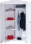 - Innenaufteilung: 3 Einlegeböden in der linken Tür, 1 Einlegeboden mit Kleiderstange in der rechten Tür