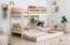 Zeitloses Design. Das Etagenbett „René“ bietet zwei komfortable Liegeflächen je 90 x 200 cm. „René“ ist aus robustem Kiefernmassivholz gefertigt und passt mit seinem klassischen Design perfekt in jedes Kinderzimmer. Dank der geraden Leiter, die sowohl rechts als auch links montiert werden kann und nicht in den Raum hineinragt, ist das Kinderbett besonders platzsparend. „René“ gibt es in Natur oder Weiß. Zwei Liegeflächen, viele Möglichkeiten. Für die Nutzung der beiden Liegeflächen hast du viele Möglichkeiten. So kann eine der Flächen tagsüber als Sofa und abends als Kuschelhöhle genutzt werden. Bei spontanen Übernachtungsgästen kannst du das Etagenbett schnell in eine weitere Schlafgelegenheit verwandeln. Oder aber „René“ wird zum klassischen Doppelstockbett, wenn sich Geschwisterkinder ein Schlafzimmer teilen und die vorhandene Fläche besser zum Spielen nutzen möchten. Platzwunder mit optionalem Zubehör. Für zusätzlichen Stauraum, zum Beispiel für Bettwäsche, Spielzeug und mehr, steht ein optionales Schubkasten-Set zur Verfügung. Der Platz unter dem Etagenbett kann aber auch für einen dritten Schlafplatz genutzt werden, indem das passende Zusatzbett darunter geschoben wird. Sicherheit für einen sorgenfreien Schlaf. Die obere Liegefläche des Hochbettes ist mit einem Rundum-Fallschutz ausgestattet. Aus Sicherheitsgründen sind alle Ecken und Kanten unserer Kinderbetten abgerundet. Die Trittleiter besteht aus stabilen und besonders tiefen Stufen für einen sicheren Halt beim Hinauf- und Hinabsteigen. Zudem legen wir großen Wert auf das Wohl deines Kindes und die Umwelt. Deshalb verwenden wir ausschließlich wasserbasierte, geruchsneutrale und völlig unbedenkliche Möbellacke. Die Nutzung des Etagenbettes empfehlen wir für Kinder ab ca. 6 Jahren. Bei einer Gesamthöhe von 141 cm ist es wichtig, die Raumhöhe zu beachten und sicherzustellen, dass dein Kind im oberen Bett problemlos aufrecht sitzen kann. Besonderheiten. Etagenbett. Kiefer Massivholz. Inkl. Leiter (beidseitig montierbar). Rundum-Fallschutz. FSC®-zertifiziert. Liegefläche. 90 x 200 cm. Abmessungen*. Tiefe: 206,5 cm. Breite: 96,5 cm. Höhe: 141 cm. Einlasstiefe: 6 cm. Pfostenstärke: 4,5 x 4,5 cm. Max. Matratzenhöhe: 16-18 cm. Nischenhöhe: 76 cm. Material. Kiefer-Massivholz. Lieferumfang. Etagenbett, inkl. Leiter. Montagematerial. Montageanleitung. Ohne Dekoration. Rollrost und Matratze separat erhältlich. Zubehör separat erhältlich. Dekoration: Tasche, Tunnel, Tüll, diverse Kissen-Sets, Einhängeregal, Bett-Tasche, Vorhang. Schubkästen oder Zusatzbett. ACHTUNG: 2x Rollrost und 2x Matratze muss separat erworben werden. *Alle Angaben sind Circa-Werte