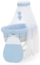 FabiMax Stubenwagen Weiß lackiert, 2 in 1 Musselin / Waffelpiqué Komplettset Blau mit Schlafsack