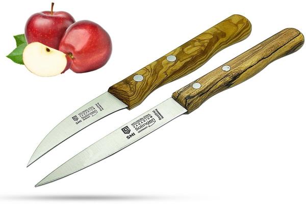 SMI Schälmesser 2-tlg Solingen Küchenmesser Schälmesser Gemüsemesser Olivenholz, gerade und gebogen