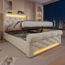 Das Flieks Polsterbett ist ein hydraulisches Stauraumbett in der Größe 90 x 200 cm, das mit LED-Beleuchtung und USB/Typ-C-Anschlüssen ausgestattet ist. Der Bezug aus Samt und die Materialien Massivholz, Sperrholz und MDF sorgen für eine ansprechende Optik und Stabilität. Mit einer Belastbarkeit von 150 kg und einem Gewicht von 40 kg ist es sowohl robust als auch funktional.