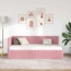 vidaXL Eckbettgestell mit Kopfteil in Rosa 90x200 cm aus Samt vereint Raffinesse und modernen Minimalismus. Die edle Samtoberfläche sorgt für ein luxuriöses Ambiente, während das durchdachte Design mit robustem Sperrholzrahmen und festem Lattenrost Langlebigkeit und Stabilität garantiert. Das platzsparende, wandmontierte Kopfteil verleiht dem Raum ein offenes Gefühl und die einfache Pflege macht es ideal für stilbewusste Menschen.