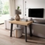 Der ausziehbare Konsolentisch von Skraut Home vereint modernes Design mit Funktionalität. Mit einer geschlossenen Größe von 90x58 cm lässt sich der Tisch auf bis zu 160 cm verlängern und bietet Platz für bis zu 8 Gäste. Die stabilen hölzernen Beine und der Teleskopmechanismus aus Aluminium sorgen für eine sichere Nutzung. Die hochwertige poröse Holzmaserung in Eiche Schwarz verleiht dem Tisch eine elegante Note.