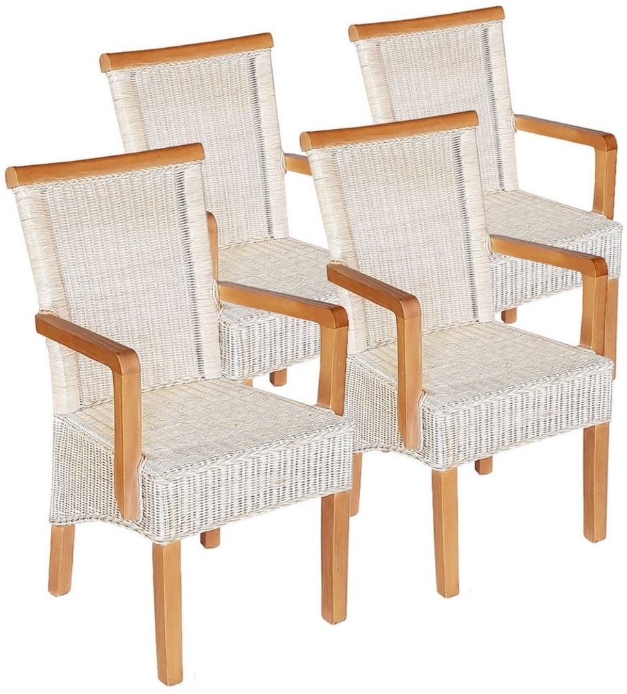Rattanstuhl Set mit Armlehnen weiß zu 4 Stück von Hand hochwertig verarbeitet und mit Griffleiste für Esszimmer oder Wintergarten