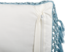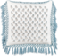 Handgefertigtes Dekokissen PALLIDA mit zartem Blumenmuster in Blockdrucktechnik. Der Baumwollbezug in Weiß und Blau mit fransigen Umrandungen verleiht Ihrem Zuhause einen romantischen Touch. Die hochwertige Polyesterfüllung ist leicht entfernbar. Maße: 45 x 45 x 10 cm.