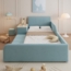 Dieses vielseitige REDOM Polsterbett kombiniert Schlaf- und Arbeitsbereich in einem Möbelstück. Mit einer komfortablen Liegefläche von 90x200 cm und einem praktischen Kinderschreibtisch sowie einem Hocker ist es ideal für Kinder- und Jugendzimmer. Die robuste Konstruktion aus Metall und Holzlatten bietet eine Tragfähigkeit von bis zu 150 kg. Das elegante Design in Blau mit Samtbezug sorgt für eine moderne Atmosphäre.