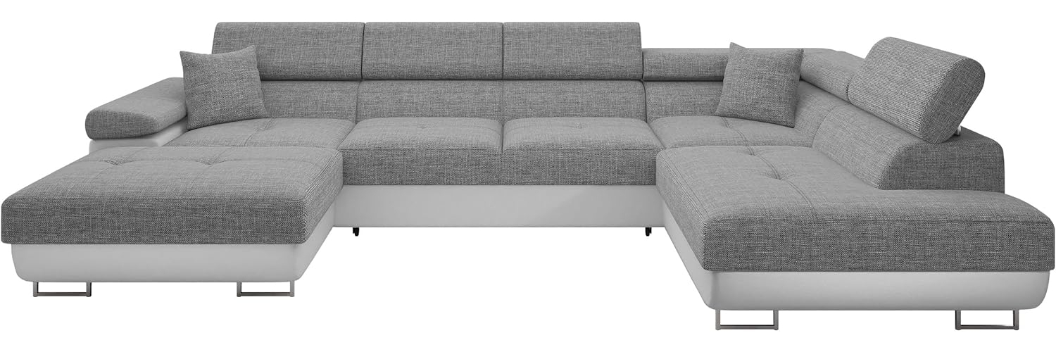 Ecksofa Torezio Bis mit Bettkasten, Schlaffunktion und Einstellbare Kopfstützen (Farbe: Soft 017 + Lux 05, Seite: Rechts)