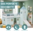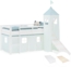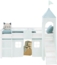 Produktbeschreibung: Ein Ort zum Spielen, Träumen und Runterkommen – dieses Hochbett bringt mit Rutsche, mintgrünem Vorhang und hohem Stoffturm nicht nur Höhe ins Kinderzimmer, sondern auch Leichtigkeit und Charakter. Durch die mitgelieferte Matratze und den passenden Lattenrost wird aus dem durchdachten Design sofort ein vollständiger Lieblingsplatz. Der Turmaufsatz mit Fenstern und Stofffahne verleiht dem Bett eine verspielte Silhouette, ohne aufdringlich zu wirken. Die Rutsche sorgt für gute Laune am Morgen, während die flexibel montierbare Leiter praktische Anpassung an jede Raumsituation ermöglicht. So bleibt das Bett wandelbar – genauso wie die Bedürfnisse im Alltag. Unter der Liegefläche bietet der zarte Vorhang mit Fensterdetails einen ruhigen Bereich, der Raum schafft – zum Lesen, Spielen oder einfach zum Verstecken. Die Matratze und der robuste Lattenrost sorgen für sofortigen Komfort und stabilen Schlaf. Gefertigt aus massivem Holz und geprüft nach den europäischen Sicherheitsnormen EN 747-1/2 und der Spielzeugrichtlinie 2009/48/EG, überzeugt dieses Kinderbett durch Sicherheit, Qualität und ein stimmiges Gesamtkonzept. Ein Komplett-Set, das mehr bietet als Funktionen – es schenkt einen Raum, der mitwächst, mitdenkt und jeden Tag aufs Neue begeistert. Produktdetails: • Bettgestell mit Rutsche und Turm, Liegefläche 90x200 cm • passendes Rolllattenrost und Komfortschaummatratze (Härtegrad 2) bereits enthalten • entspricht den Sicherheitsanforderungen der EN 747 und der Spielzeugrichtlinie 2009/48/EG • Leiter und Rutsche wechselseitig montierbar • mit Sicherheitsumrandung (Absturzsicherung) • abgerundete Kanten und Pfosten • umlaufender Stoffvorhang in angenehmen Mintgrün Maße: • Außenmaße (Bx Hx T): 207,5 x 228 x 217,5 cm • Höhe Bett ohne Turm: 110 cm • Liegefläche: 90x200 cm • Spielhöhe unter dem Bett: 75,5 cm • Breite Einstieg: 35,5 cm • Höhe Absturzsicherung: 26 cm • Einlegetiefe Matratze: 3,5 cm • Pfostenstärke: 5 cm • Maße je Holzlatte Lattenrost (Bx Hx T): 90 x 1,3 x 6 cm • Matratze (Bx Hx T): 90 x 11 x 200 cm Material & Farbe Bett & Lattenrost: • Kinderbett aus massivem Kiefernholz gefertigt • weiß lackiert (Holzmaserung sichtbar) • pastellgrüne Stoffe aus 100 % Baumwolle (30 Grad Wäsche) • Pflegehinweis Bettgestell: mit einem feuchten Tuch abwischen • Lattenrost aus Kiefernholz, naturbelassen • Oberfläche gehobelt • doppelseitig mit Gurtbändern versehen • Farbe: weiß und grün Material & Farbe Matratze: • Bezug: 100 % Polyester, weiß • Matratzenbezug atmungsaktiv und hautsympathisch • Füllung: PU - Komfortschaumstoff 25 kg/m³ Lieferdetails: • Rutschbett mit Matratze, Lattenrost, Turm & Vorhang (grün), Aufbauanleitung, Montagezubehör • Dekoration ist nicht im Lieferumfang enthalten • • Das Bett wird zerlegt geliefert und muss montiert werden. Warnhinweise: • Altersempfehlung: Hochbetten und das obere Bett vom Hochbett sind wegen der Verletzungsgefahr durch Herabfallen nicht für Kinder unter sechs Jahren geeignet. • Strangulationsgefahr: Hochbetten und das obere Bett vom Hochbett können ein ernsthaftes Verletzungsrisiko durch Strangulation darstellen, wenn sie nicht richtig benutzt werden. Hängen Sie niemals Gegenstände an irgendeinen Teil des Hochbettes, die dafür nicht konzipiert wurden, zum Beispiel Seile, Schnüre, Kordeln, Haken, Gürtel und Taschen. • Abstand zwischen Wand und Bett: Kinder können zwischen Bett und Wand, Dachschräge, Zimmerdecke, naheliegende Möbelstücke (z.B. Schränke) und ähnlichem eingeklemmt werden. Um ernsthafte Verletzungen zu vermeiden, sollte der Abstand zwischen der oberen Sicherheitsbarriere und der Wand nicht größer als 75 mm oder größer als 230 mm sein. • Fehlende Bauteile: Verwenden Sie das Etagenbett nicht, wenn Bauteile fehlen oder defekt sind. • Befolgen Sie immer die Anweisungen des Herstellers. • Maximale Belastbarkeit: Dieses Bett ist für eine maximale Belastung von 120 kg je Liegefläche ausgelegt. Überschreiten Sie diese Gewichtsgrenzen nicht. • Matratzengröße und -höhe: Die empfohlene Matratzengröße(n): 2000×900×100 mm. Die maximale Dicke der Matratze beträgt 130mm. Achten Sie auf die Markierung für die maximale Matratzenhöhe. • Luftqualität und Belüftung: Eine ausreichende Belüftung des Raums ist erforderlich, um die Luftfeuchtigkeit niedrig zu halten und Schimmelbildung in und um das Bett zu vermeiden. • Montage und Stabilität: Stellen Sie vor der Verwendung immer sicher, dass die Leiter/Treppe dauerhaft an diesem Hochbett befestigt sind. Prüfen Sie zudem regelmäßig, ob alle Befestigungen festgezogen sind. • Wandbefestigung: Dieses Produkt muss an einer Wand oder Gebäudestruktur befestigt werden. • Brandschutz: Halten Sie das Bett von Heizquellen und offenen Flammen fern, da Holz und andere Materialien entflammbar sind. • Das Bett wurde auf Grundlage der europäischen Sicherheitsnorm EN 747-1/2 sowie der EU-Spielzeugrichtlinie 2009/48/EG entwickelt und auf sicherheitsrelevante Merkmale geprüft. Es liegt keine offizielle Zertifizierung oder ein Prüfzeichen (z. B. TÜV, GS) vor. • Bitte beachte den Sicherheitsaufkleber auf dem Bett. Dieser darf nicht entfernt werden.