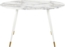 Moderner Esstisch GUTIERE mit ovaler Tischplatte in edler Marmor-Optik. Die Kombination aus hochwertigem MDF und stabilen, weiß-goldenen Eisenbeinen sorgt für eine glamouröse Ausstrahlung in Ihrer Küche oder Ihrem Esszimmer. Mit den Maßen 120 x 70 x 75 cm bietet der Tisch Platz für bis zu 4 Personen und ist dabei besonders pflegeleicht und langlebig.