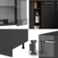 Die Vicco Singleküche der R-Line Serie in Anthrazit Hochglanz bietet eine ideale Lösung für kleine Räume. Mit einer Breite von 160 cm, einer Höhe von 81,6 cm und einer Tiefe von 46 cm bietet sie ausreichend Stauraum für Geschirr, Töpfe und Lebensmittel. Die modulare Bauweise ermöglicht eine individuelle Anpassung, während die höhenverstellbaren Füße eine Anpassung an jede Raumhöhe gewährleisten. Der Küchenblock besteht aus pflegeleichter Spanplatte mit einer Melaminharzbeschichtung.