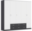 Der Rauch Kleiderschrank GAMMA ist ein 5-türiger Drehtürenschrank in Alpinweiß/Grau metallic, der mit seinen Abmessungen von 226 x 210 x 54 cm ideal für Ihr Schlafzimmer ist. Mit 6 Schubkästen und einer Spiegeltür bietet er nicht nur viel Stauraum, sondern auch eine elegante Optik. Die sanft schließenden Türen mit Türdämpfern erhöhen den Komfort und die Langlebigkeit des Schranks.