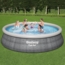 Fast Set™ Aufstellpool-Set mit Filterpumpe Ø 457 x 107 cm, Rattan-Optik (Schiefergrau), rund Mit diesem praktischen Bestway® Fast Set™ Pool Set sind Sie im Handumdrehen bereit für einen Tag am Pool! Der Fill & Rise -Aufbauprozess ist einfach - wählen Sie einfach eine ebene Fläche, blasen Sie den oberen Ring auf und der Pool hebt sich, während er mit Wasser gefüllt wird. Die robuste Poolfolie aus dem langlebigem, 3-lagigem DuraPlus™ -Material, welches 85 % reißfester als herkömmliches PVC ist. An der Außenseite verfügt die Poolfolie zudem über außerdem über einen realistische schiefergraue Rattan-Optik, der Ihrem Garten ein edles Aussehen sowie das gewisse Ambiente verleiht. Wenn die Saison vorbei ist, kann der Pool mühelos eingelagert werden. Das Wasser lässt sich mithilfe des integrierten Ablassventils leicht ablassen und der Pool kann für die anschließende Lagerung kompakt zusammengeklappt werden. Im Lieferumfang ist zudem eine Filterpumpe für immer sauberes Wasser enthalten. Dieser Pool ist die optimale Wahl für Familien, die eine schnelle und einfache Poollösung für ihren Garten suchen. Genießen Sie und Ihre Kinder mit dem Fast Set Pool™ von Bestway® den perfekten Sommer! Produktdetails • Konstruktion: • Größe: Ø 457 x 107 cm • Wasserkapazität (80%): 12.362 Liter • Robustes, 3-lagiges DuraPlus™ -Material • Anschlussmöglichkeit eines Filtersystems (Ø 32 mm) • Farbe: Rattan-Optik (Schiefergrau) • Auf- und Abbau: • Selbstaufbauend (Befüllen bei aufgepumptem Luftring auf ebener Oberfläche) • Integriertes Ablassventil + Gartenschlauchadapter • Einfacher Transport + Lagerung • Sicherheitsventil • Lieferumfang: • Flowclear™ Filterpumpe #58383 2.006 l/h, GS-zertifiziert (TÜV Rheinland) • Flowclear™ Filterkartusche #58094 Gr. II (10,6 x 13,6 cm) • Flowclear™ Sicherheitsleiter #58330 107 cm • Selbstklebender Reparaturflicken • Farbkarton • Kundenservice Warnhinweise: Achtung! Die Verwendung eines eines Pools setzt voraus, das dieser alle geltenden Sicherheitsvorschriften erfüllt. Diese können in der jeweiligen Betriebsanweisung nachgelesen werden. Um ein Ertrinken oder andere ernsthafte Verletzungen zu verhindern, sollte der Pool dementsprechend gegenüber unbeaufsichtigtem Betreten gesichert werden. Dies gilt besonders für Kinder unter 5 Jahren. Dies sollte ausschließlich unter der Aufsicht einer erwachsenen Person erfolgen. Vom Hineinspringen in den Pool wird abgeraten! Der Pool sollte nur auf einem ebenem Untergrund aufgebaut werden! Der Rand dient nicht als Sitzfläche! CJ20-01-01-01-A1-28-V7 *Hinweis: - Wenn Ihr Bestway®-Produkte gekauft habt, verwendet ausschließlich originale Ersatzteile & Zubehör von Bestway® - auch nach Ablaufen der Garantie. Solltet Ihr doch Fremd-Komponenten benutzen oder verbauen, übernimmt Bestway® KEINE Haftung für mögliche Schäden.