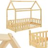 Das moderne Kinderbett Marli (160x80 cm, natur) mit Rausfallschutz, Lattenrost und Dach ist ideal für Mädchen und Jungen von 3 bis 10 Jahren. Als gemütlicher Schlafplatz und Spielort verschönert das Hausbett jedes Kinderzimmer. Denn die Hausoptik mit offenem Dach bietet viele Möglichkeiten! Gestalten Sie das Bett mit Himmeldekoration, als Höhle oder ein abenteuerliches Spielbett. Besonders für junge Kinder bietet ein Gitter mehr Schutz und Sicherheit. Für einen langjährigen Einsatz ist das Holzbett durch das massive und pflegeleichte Kiefernholz die richtige Wahl.