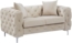 Entdecken Sie das Chesterfield-Sofa EDWINA, ein elegantes 2-Sitzer-Modell in Beige, das mit seinem weichen Samt und der raffinierten Polsterung Ihr Zuhause aufwertet. Die stabile Holzstruktur und die Metallfüße sorgen für Langlebigkeit und Stil. Mit einer maximalen Traglast von 240 kg und komfortabler Polsterung ist es ideal für entspannte Stunden.