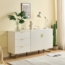 Dieses elegante Sideboard in reinem Weiß mit goldenen Akzenten und braunen Stahlbeinen vereint modernes Design mit praktischer Funktionalität. Mit großzügigen Abmessungen von 160 x 40 x 81,5 cm bietet es umfangreichen Stauraum. Die drei Schubladen und zwei Türen ermöglichen eine optimale Organisation von Geschirr und Accessoires. Hergestellt aus robustem MDF, garantiert es Langlebigkeit und einfache Pflege. Ideal als Buffet im Esszimmer oder als stylisher Aufbewahrungsschrank im Wohnzimmer.