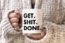 Die MoonWorks Tasse "Get Shit Done" ist eine coole Keramiktasse mit einem motivierenden Spruch. Mit einem Fassungsvermögen von 375 ml und einem großen Henkel bietet sie optimalen Komfort. Die Tasse ist spülmaschinengeeignet und mikrowellenfest, was die Reinigung erleichtert. Hergestellt in Deutschland, überzeugt sie durch hochwertige Qualität, Langlebigkeit und Farbbrillanz.