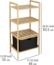 • Abmessungen: Das Bücherregal ist 44 cm breit, 93,5 cm hoch und 33 cm tief, was für eine ausreichende Kapazität sorgt und gleichzeitig Platz im Badezimmer spart.