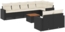 Die vidaXL 9-tlg. Garten-Sofagarnitur mit Kissen in Schwarz aus Poly Rattan ist die ideale Ergänzung für Ihren Garten, Ihre Terrasse oder Ihren Innenhof. Sie bietet einen bequemen Platz zum Entspannen mit Familie und Freunden. Das langlebige PE-Rattan-Material sorgt für eine natürliche Optik und ist UV-beständig. Die Sofas verfügen über Stauraum mit wasserfestem Beutel, während der Tisch mit einer pflegeleichten Akazienholzplatte ausgestattet ist.