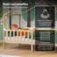 Der feste Rahmen mit Geländer schützt dein Kind zuverlässig vor dem Herausfallen. Gleichzeitig vermittelt das Design in Hausoptik ein Gefühl von Geborgenheit und lädt zum Kuscheln und Zurückziehen ein.