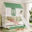Das Merax Etagenbett aus Kieferholz vereint traumhafte Optik mit cleverer Funktionalität. Mit den Maßen 205,4 x 236,5 x 228,6 cm bietet es eine Liegefläche von 90 x 200 cm für das Hauptbett und 90 x 200 cm für das Ausziehbett. Das verspielte Hausdesign mit Rutsche und stabiler Holzkonstruktion schafft einen einladenden Raum für Spiel und Schlaf. Ideal für lebendige Kinderzimmer, fördert es Fantasie und Familienfreundlichkeit.