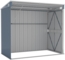 Dieses an der Wand montierte Gartenhaus aus verzinktem Stahl in Grau bietet mit seinen Maßen von 118 x 194 x 178 cm ausreichend Platz für Werkzeuge, Gartenmöbel und mehr. Die doppelt zu öffnenden Türen erleichtern den Zugang, während der Kunststoffgriff mit Schlossfunktion die Sicherheit gewährleistet. Dank des schrägen Dachs fließt Regenwasser problemlos ab. Die Montage an der Wand ist mit den mitgelieferten Dehnschrauben einfach.