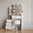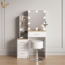 Lieferumfang1x Schminktisch, 1x LED-Lichterkette, 1x Hocker, 1x Montageanleitung, 1x Montagematerial