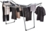 Lange Wäschestücke wie Badehandtücher oder Hosen trocknen auf den seitlichen, aufklappbaren Flügeln, auf denen mit einer Höhe von 107 cm nichts auf dem Boden schleift. Die beiden äußeren Leinenstäbe der Flügel eignen sich dank ihrer Wellenform perfekt für das Aufhängen von Kleiderbügeln.