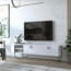 Praktischer TV-Möbel Malina in Weiß mit den Maßen 150 x 36 x 44 cm. Dieses moderne und funktionale Möbelstück bietet zwei Schubladen und zwei Fächer, ideal für die Aufbewahrung von Fernseher, Stereoanlage oder Dekorationen. Die Melaminbeschichtete Spanplatte sorgt für Langlebigkeit, während die Metallbeine Stabilität bieten. Perfekt für platzsparende Lösungen in jedem Wohnraum.