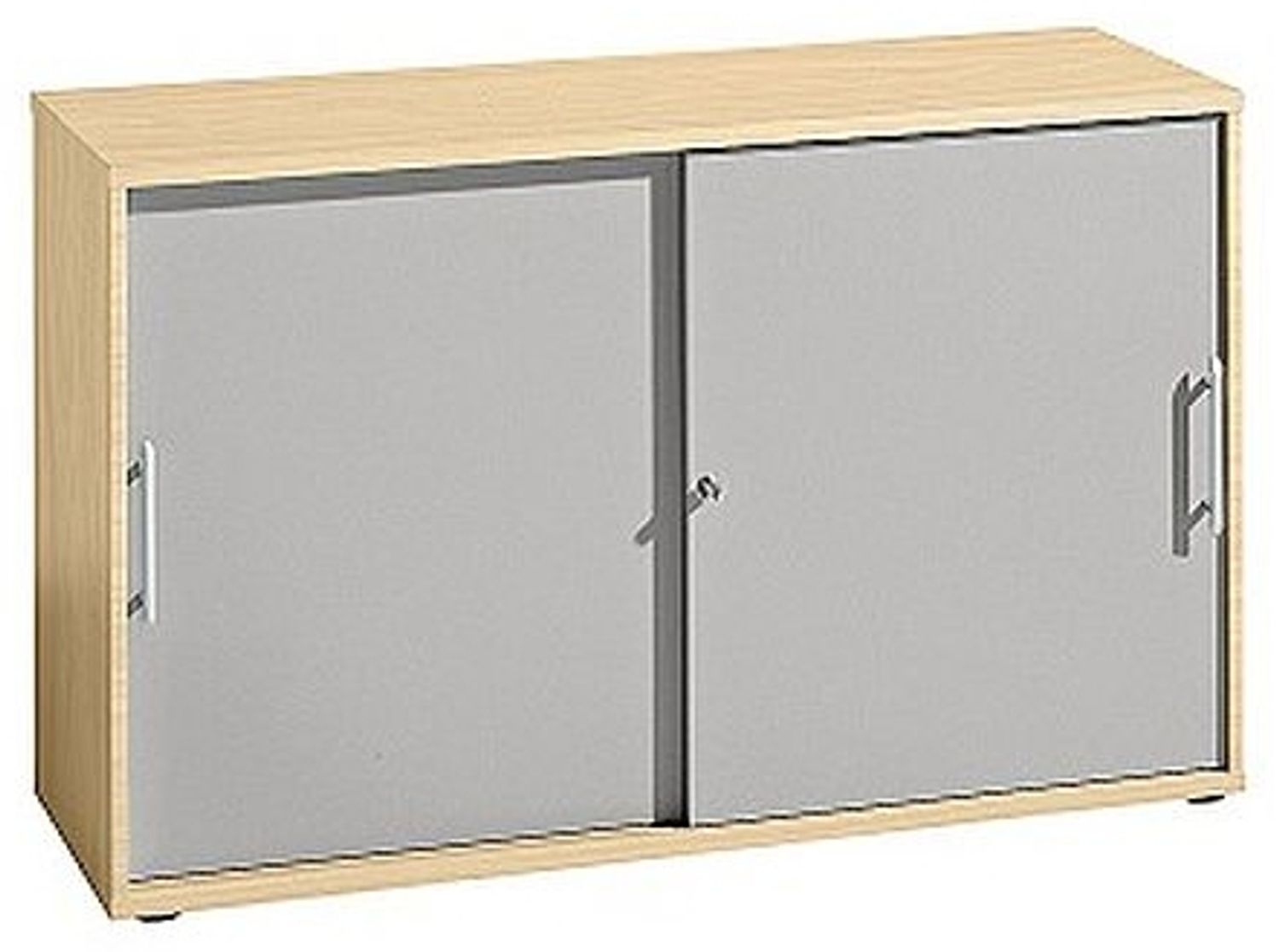 Schiebetürschrank 2 Ordnerhöhen, 120cm BM Ahorn / Silber