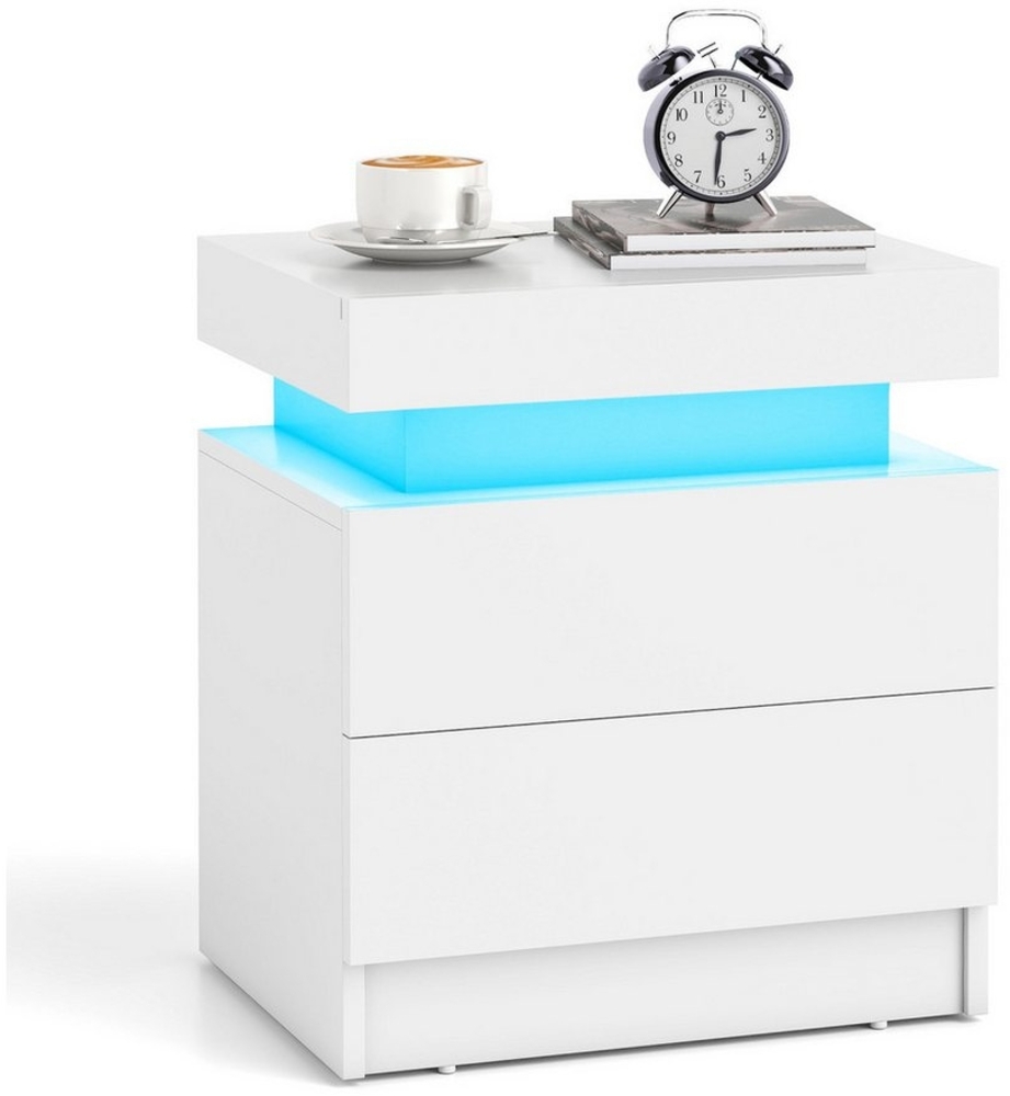 Verwandeln Sie Ihr Schlafzimmer mit dem COSTWAY Nachttisch in eine stilvolle Oase. Dieser moderne Nachttisch bietet nicht nur praktische 2 Schubladen, sondern auch eine faszinierende RGB-LED-Beleuchtung, die eine fesselnde Atmosphäre schafft. Mit einer Tragfähigkeit von 80 kg auf der Tischplatte und einer Schublade, die bis zu 5 kg tragen kann, ist er sowohl funktional als auch ästhetisch ansprechend.