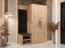 Garderoben-Set Mapreni IV in der Farbvariante Artisan Eiche und Manila 04 bietet eine stilvolle und funktionale Lösung für Ihren Eingangsbereich. Das Set umfasst einen Drehtürenschrank, einen Schuhschrank, ein Kleiderhakenbrett und gepolsterte Wandpaneele. Alle Möbelstücke sind aus 16 mm dicker Spanplatte gefertigt und bieten durch ihre Maße optimale Stauraummöglichkeiten.