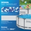 Der Pool kommt mit einem vielseitigen Gartenschlauchadapter, zwei Verschlussstopfen, einer Ablassventilkappe sowie einem robusten, wasserfesten Reparaturflicken, damit du immer auf kleine Missgeschicke vorbereitet bist.