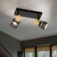 Kombinationsstark und modern präsentiert sich diese 2-flammige Deckenleuchte aus Eisen und Stahl. Die harmonische Verbindung von Holz und Metall verleiht der Leuchte einen zeitgemäßen Look. Mit beweglichen Spots und einer klaren Formensprache fügt sie sich perfekt in puristische Wohnstile ein.